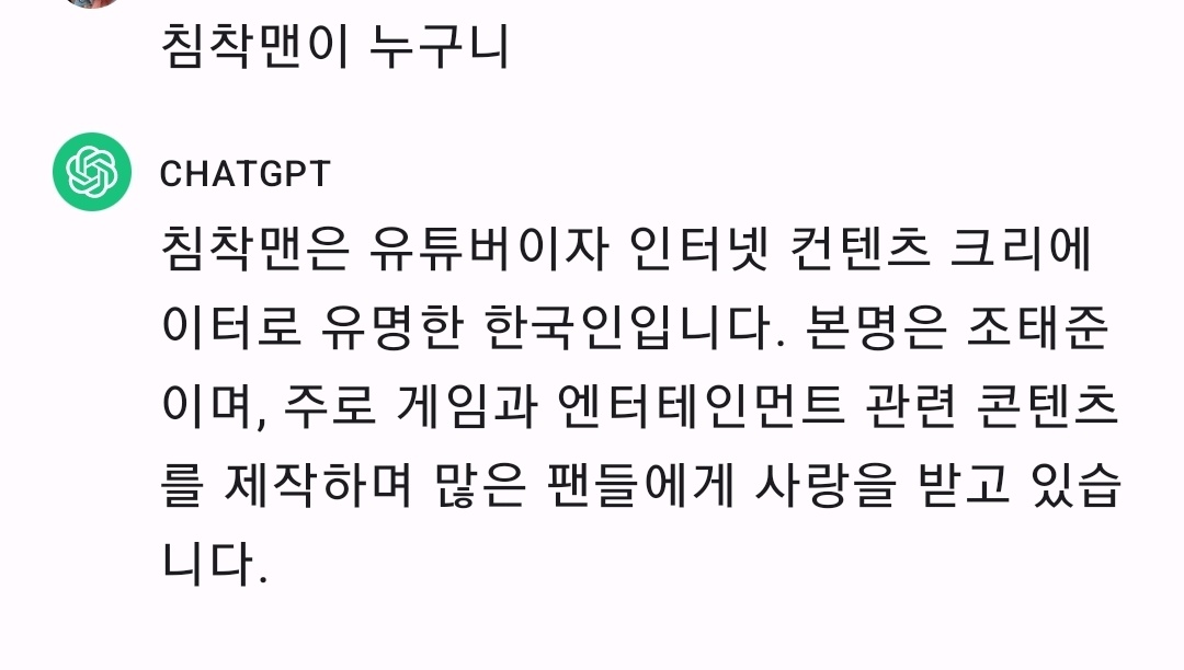 | 챗gpt에게 침착맨에 대해서 아는지 다시 물어봤습니다. (0) | 2023.08.01 |